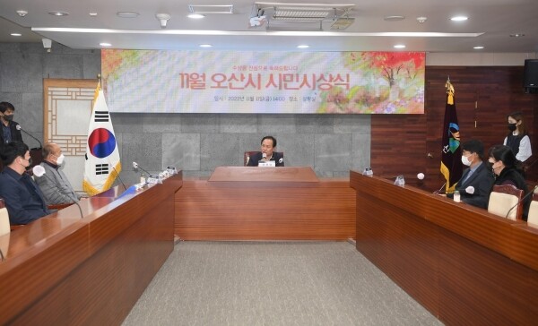 이날 시상식은 시청 상황실에서 열린 가운데 이권재 오산시장의 축하 인사와 표창장 수여 그리고 사진 촬영 순으로 진행됐다.