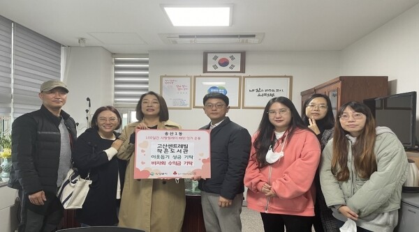 이성희 송산1동장은 “주변 이웃들과의 나눔·소통의 장을 만들기 위해 노력해주신 고산센트레빌 작은도서관 관계자분들게 감사드리며 전달받은 성금은 관내 도움이 필요한 저소득층에게 소중히 쓰일 수 있도록 하겠다”고 전했다.