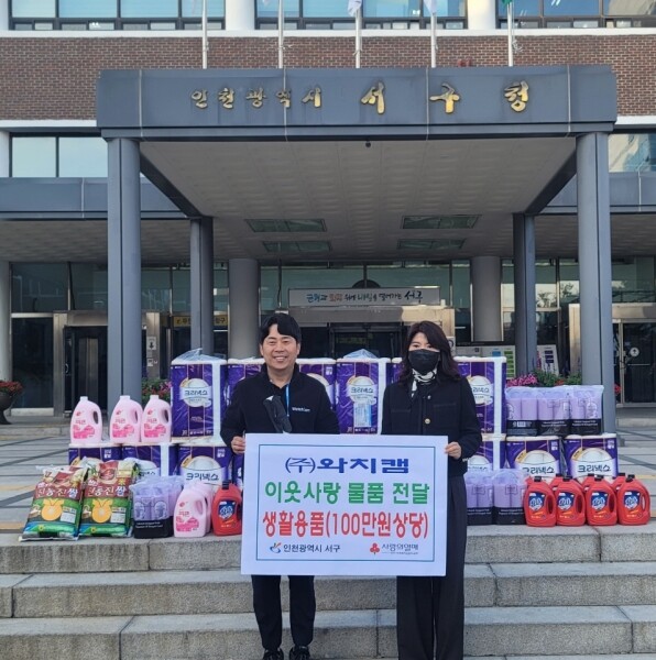 서구 관계자는 “어려운 이웃에게 따뜻한 마음을 전해주신 ㈜와치캠에 진심으로 감사드리고 앞으로도 지속적인 관심을 부탁드린다”며 “이날 후원받은 물품은 인천사회복지공동모금회를 통해 인천서구장애인종합복지관에 전달할 예정”이라고 밝혔다.