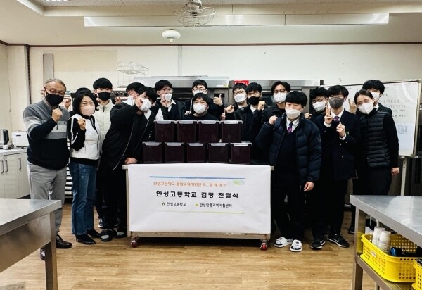 안성고등학교 통합교육지원반은 매년 다양한 나눔 활동을 통해 장애인식 개선 및 지역사회발전을 위해 노력하고 있는데, 이날 기증된 김장김치는 안성고등학교 통합교육지원반 학생들이 직접 농사지은 배추와 무, 고추, 파를 재료로 반 전체 학생들이 협력해 만든 것이기에 그 의미가 더 큰 것으로 보인다.