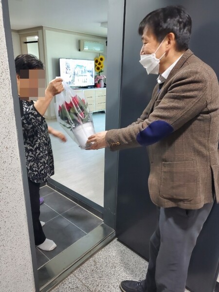 이날 홀몸 어르신들에게 전달된 화분은 봉사하는 착한가게 ‘그린화원’에서 후원해 줬으며 어르신 가정을 방문해 화분을 전달하고 거주 환경 및 건강 상태를 확인하는 시간을 가졌다.