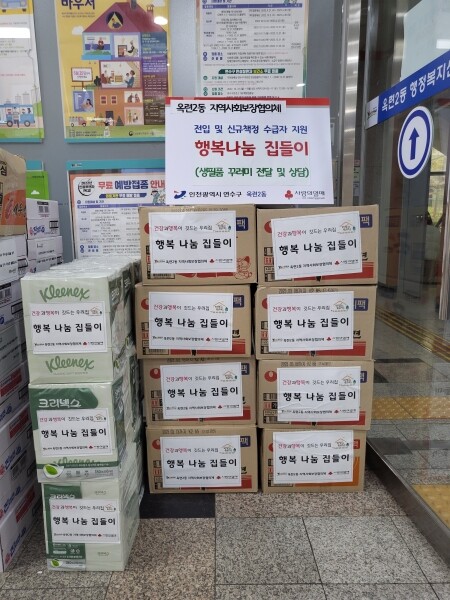 2022년 4월부터 분기별로 추진된 ‘행복나눔 집들이 사업’은 옥련2동 지사협 특화사업으로 지역으로 전입한 기초수급자·차상위계층 등 취약계층 세대에 생필품 꾸러미를 전달하는 사업이다.