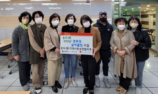 송도2동 지역사회보장협의체 연합모금액 53만6500원으로 마련한 58개의 스프레이형 살균소독수를 위원들이 직접 경로당에 전달함과 동시에 복지체감도를 높이고자 어르신들을 위한 사회복지서비스 안내도 함께 실시했다.