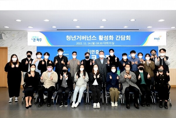 김경일 파주시장은 “청년 거버넌스가 시정 운영의 중요한 파트너인 만큼 함께 논의하는 자리를 지속적으로 마련하겠다”며 “청년들이 정책설계에 직접 참여하는 장을 확대하고 청년이 원하고 체감할 수 있는 차별화된 청년정책이 발굴되도록 적극 지원하겠다”고 말했다.