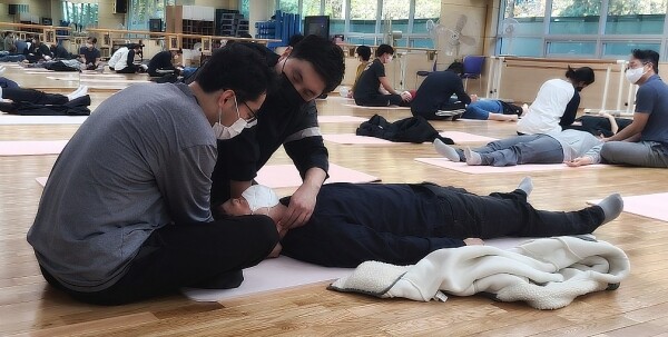 이번에 진행된 ‘스포츠마사지’ 특강은 동탄복합문화센터 헬스장 내에 있는 GX룸에서 진행됐다.