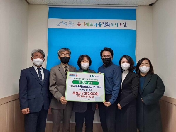 기탁식에 참석한 김재인 한국국토정보공사 오산지사장은 “미래를 이끌어갈 오산의 아동·청소년들에게 도움이 되기를 바란다”며 “앞으로도 사회적 가치 실현을 위해 꾸준히 노력하겠다”고 말했다.