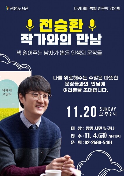 강연회 접수는 현재 진행 중이며 광명도서관 누리집, 전화, 또는 도서관을 방문해 신청하면 된다.