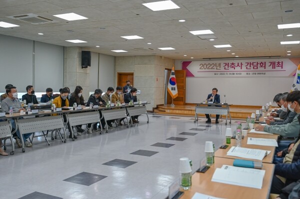 관내 건축사사무소 대표와 관계 공무원 등 60여명이 참석한 이날 간담회에서는 민선 8기 주요시책과 군정 방향 공유, 법령개정사항 및 건축관련주요 안내사항전달, 건축 관련 처리시스템 문제점 및 개선방안 논의, 애로사항 및 건의사항 청취 등 건축관계자와의 다양한 의견을 나누기 위해 개최됐다.
