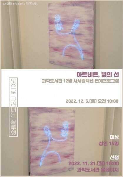 12월 사서컬렉션 연계프로그램 ‘아트네온, 빛의 선’은 과학과 예술의 만남이라고 볼 수 있다.
