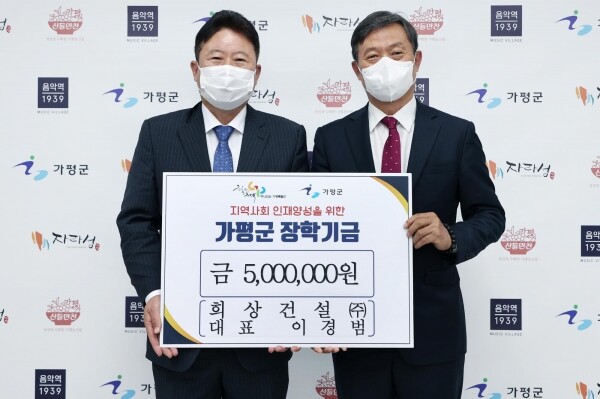서태원 가평군수는 “가평군 인재양성을 위해 장학금을 쾌척해 준 이경범 대표님께 깊은 감사를 드린다”며 “기탁해 주신 장학금은 가평군의 우수한 지역인재 육성을 위해 소중하게 사용할 것”이라고 말했다.