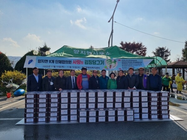 새마을부녀회, 지역사회보장협의체, 노인회, 이장협의회, 주민자치위원회, 체육회, 면정자문위원회, 발전협의회, 청소년지도위원회 등 9개 단체가 지난 15~16일 이틀 동안 김장을 담갔다.