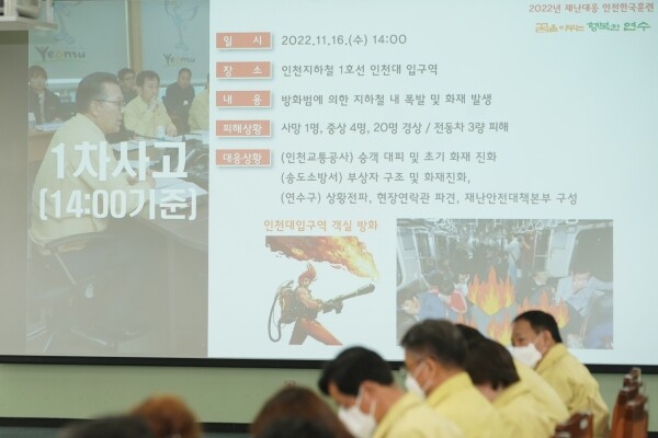 연수구는 오는 18일 오후에 인천대 입구역에서 12개 기관과 3개 민간단체 등 250여명이 참여해 ‘2022년 재난대응 안전한국훈련’ 현장대응훈련을 진행할 예정이다.