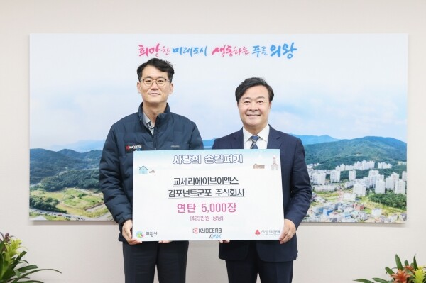 정성기 교세라에이브이엑스 컴포넌트군포 대표이사는 “점점 추워지는 계절을 맞아 지역의 어려운 이웃들에게 조금이나마 힘이 되고자 연탄기부와 봉사활동을 하게 됐다”며 “어렵고 소외된 이웃과 함께하는 따뜻한 기업이 되겠다”고 말했다.