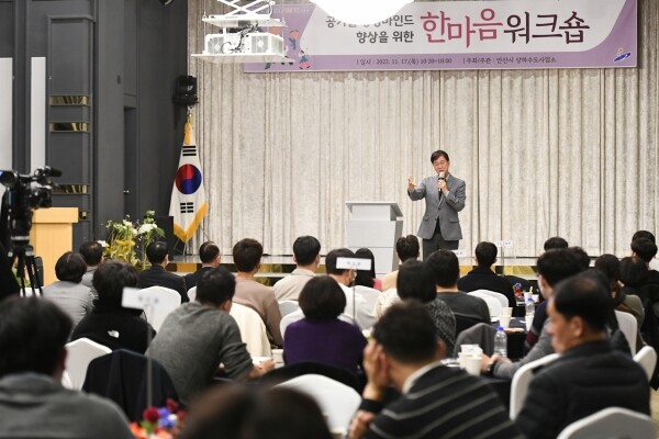엠블던 호텔에서 실시된 이번 워크숍은 상하수도사업소 공직자들의 경영목표 이해와 공감대 형성을 통해 업무역량을 향상시키고 조직문화 활성화에 기여하기 위해 마련됐다.