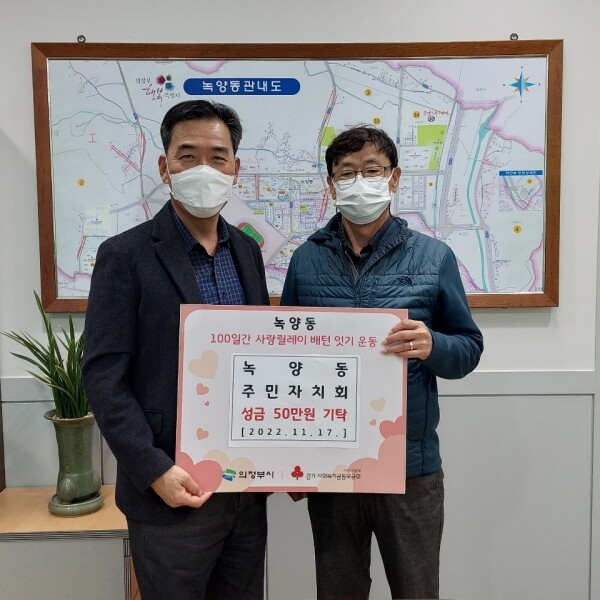 한편 2023년 1월 20일까지 진행되는 100일간 릴레이식 기부 캠페인에 참여를 원하는 개인, 기관 및 단체는 녹양동주민센터로 문의 및 신청할 수 있다.