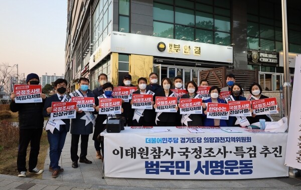 이날 서명운동에는 더불어민주당 의왕과천지역위원회 위원장인 이소영 국회의원을 비롯해 서창수·김태흥·한채훈 의왕시의원과 이주연·박주리 과천시의원, 김옥순 경기도의원, 운영위원, 동협의회장, 상설위원장, 특별위원장, 일반당원 등이 참석했다.