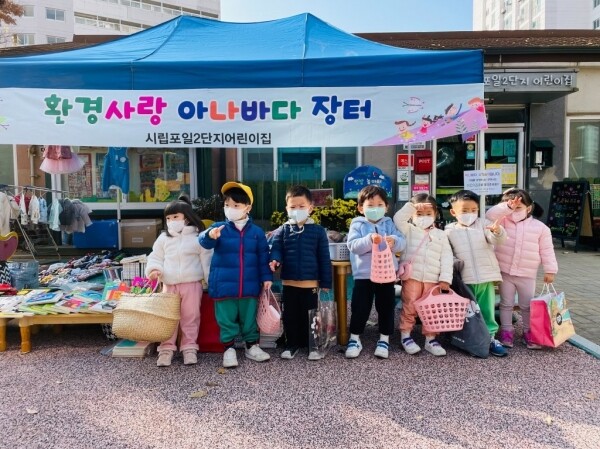이번 성금은 시립포일2단지어린이집 원아들이 사용하지 않는 장난감이나 입지 않는 옷 등 다양한 물건들로 ‘아나바다 장터’를 운영해 마련한 수익금을 모아 동에 기탁했다.