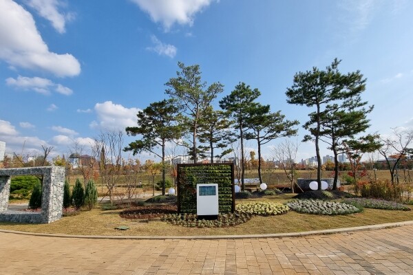 이번 ‘SK 행복숲정원’은 원형공간의 곡선을 활용해 몽글몽글한 부피감을 강조하는 평택의 자연이라는 콘셉트로 구성했으며 교목 문그로우, 배롱나무 등 3종 12주, 관목 수수꽃다리, 수국백당 등 5종 690주, 초화류 억새, 댑싸리 등 14종 654본 총 1,356본의 수목이 식재됐으며 솟대, 게비온, 벤치 등 10종 25개의 조경시설물 특히 code. G 케어시스템을 설치해 사물인터넷을 활용한 자동관수가 가능하다.