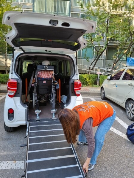 장애인 특화차량은 2021년 한국건강관리 협회가 지원했다.