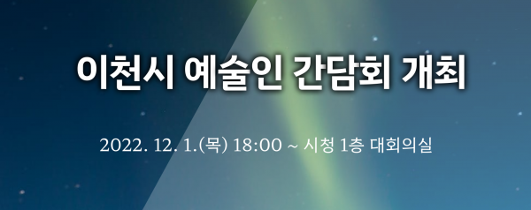 한편 예술인 간담회 신청은 이천시청 홈페이지 공지사항, 문예관광과 예술팀전화 접수, 또는 아래 링크에 접속해 신청하면 된다.