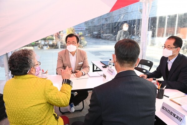 이동시장실에는 자치행정국장, 미래도시사업단장, 일자리경제과장 등이 배석해 이 시장과 함께 상담을 도왔다.
