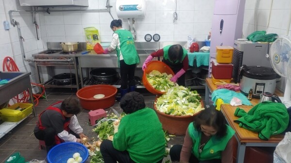 새마을부녀회에서는 바쁜 와중에도 홀몸 어르신들의 따뜻한 식사를 위해 사랑의 김장 나눔 행사로 마련한 김장김치 8kg와 닭볶음탕, 된장국을 준비했다.
