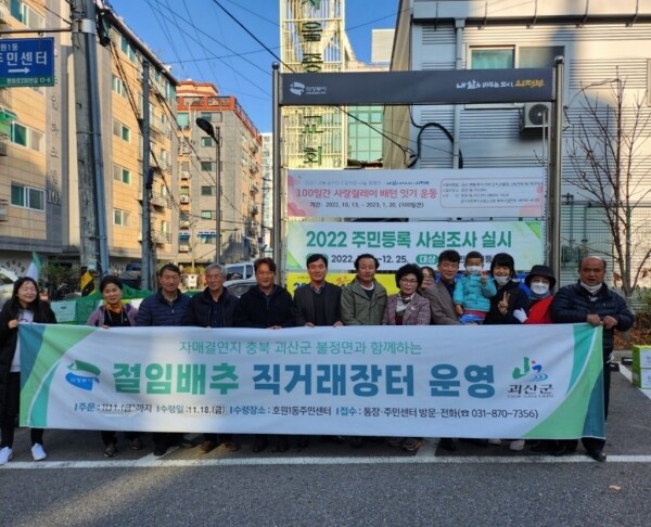 이날 행사는 호원1동과 괴산군 불정면 공무원 및 자생단체 회원 60여명이 참여한 가운데 입동이 지나며 갑자기 찾아온 추위가 무색할 정도로 절임배추를 사전 주문한 시민들의 뜨거운 관심과 환영 속에서 무사히 종료됐다.