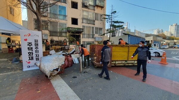 이번 복구지원 대상은 지난 11월 9일 화재가 발생해 가구와 가전제품, 집기류 등이 전소해 큰 피해를 입은 가구로 기초생활수급 지원을 받고 있어 피해 복구에 어려움을 겪었다.