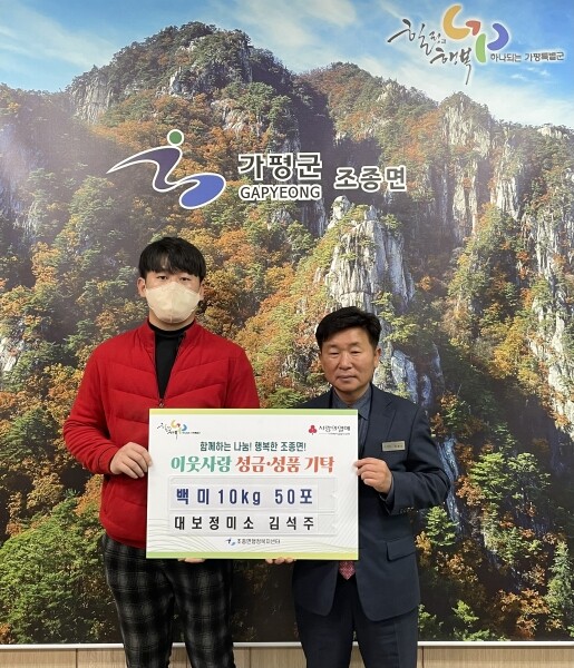 대보정미소 김석주 대표는 “겨울을 앞두고 주변 이웃들과 정을 나누고자 기탁하게 됐다”며 “이번 기탁이 조종면 내 어려운 지역 주민들에게 조금이나마 위안이 됐으면 좋겠다”고 말했다.