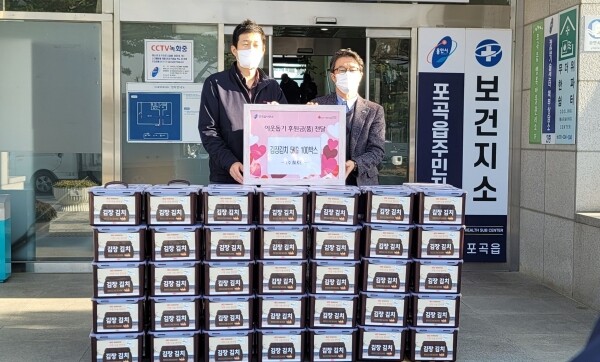 ㈜엠케이전자는 반도체 후공정 핵심제품을 생산하는 업체로 지난해에도 포곡읍에 저소득 주민을 위해 도와달라며 김장김치 50박스를 기탁했다.
