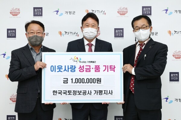 이날 전달식에 참석한 한국국토정보공사 가평지사 권오철 지사장은 “고물가와 코로나19 장기화로 힘든 시기를 보내고 있는 우리 주변의 어려운 이웃들에게 작게나마 보탬이 되고 싶다”며 “앞으로도 이웃사랑 나눔을 통해 따뜻한 지역사회를 만드는 데 기여하겠다”고 말했다.
