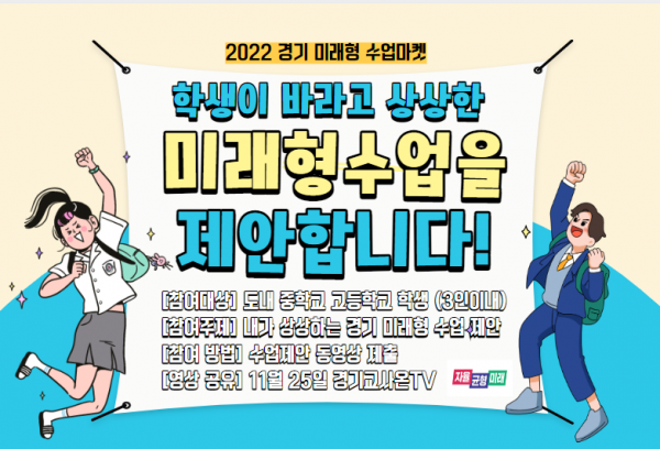경기 미래형 수업 마켓은 중·고등학생이 개인 또는 3명 이내로 팀을 구성해서 팀원들과 마음껏 상상한 미래형 수업을 영상으로 제작해 제안하는 방식으로 진행한다.
