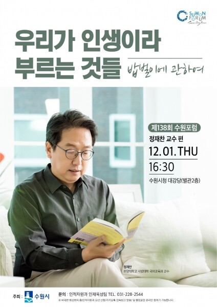 정재찬 교수는 밥벌이, 돌봄, 배움, 사랑, 건강 등 우리가 인생이라 부르는 것들에 대해 시에서 얻은 지혜와 성찰을 들려줄 예정이다.