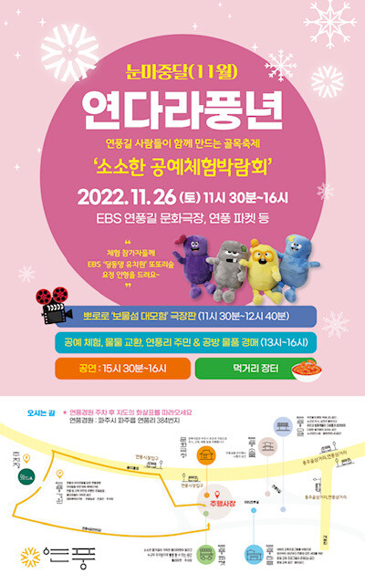 연다라풍년 행사는 매월 넷째 주 토요일에 열리는 정기 행사로 주민협의체 연풍다움, 공방연합회, 상인회, 부녀회 등 ‘EBS연풍길’ 사람들이 함께 만드는 골목 축제다.