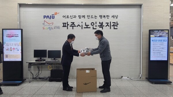 ㈜동산아이엔지는 방한용품을 기탁하며 노인 및 장애인 등 소외계층을 위해 써달라는 뜻을 전했으며 기부된 물품은 파주시 노인복지관, 장애인회관, 문산종합사회복지관을 통해 경로식당 및 장애인 무료급식 이용자 등에 전달했다.