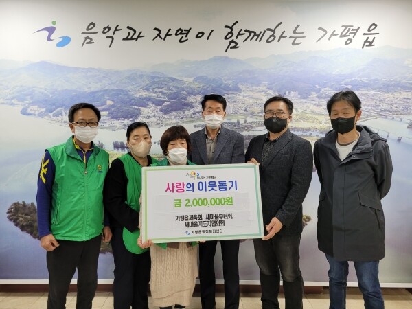 이에 임상호 가평읍장은 “3개 단체가 연합으로 회원들의 마음이 담긴 정성어린 성금 기탁에 각별히 감사드리며 관내 어려운 이웃이 겨울을 이겨낼 수 있도록 꼭 필요한 곳에 성금을 소중히 전하겠다”고 말했다.
