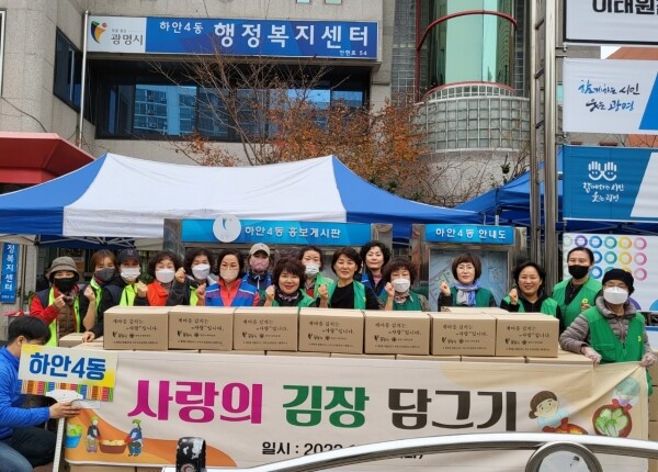 박란주 하안4동장은 “이른 아침부터 추운 날씨에도 고생하신 새마을부녀회 회원들과 행사에 참여해 주신 모든 단체원께 깊은 감사의 말씀을 드린다”며 “사랑의 김장나눔 행사가 우리 동의 어려운 이웃들에게 큰 응원이 되길 바란다”고 전했다.