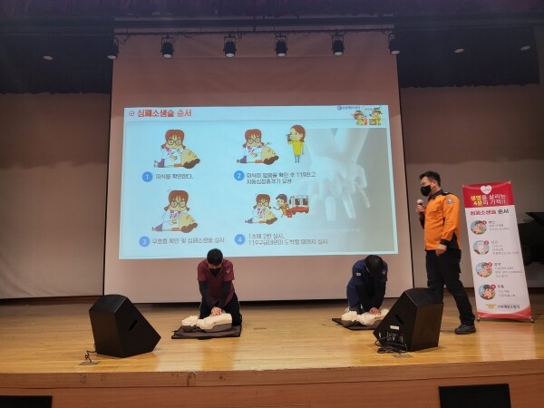 이번 교육은 계양소방서 구급지도관이 CPR 현장실습 교육을 실시하고 계양구정신건강복지센터 고형진 강사를 초빙해 ‘정신건강의 중요성과 스트레스 예방법’이라는 주제로 복무 중에 발생하는 갈등과 스트레스 해소 방법 주변의 자살 위험에 대응하는 법 등 정신건강 증진을 위한 프로그램으로 진행했다.