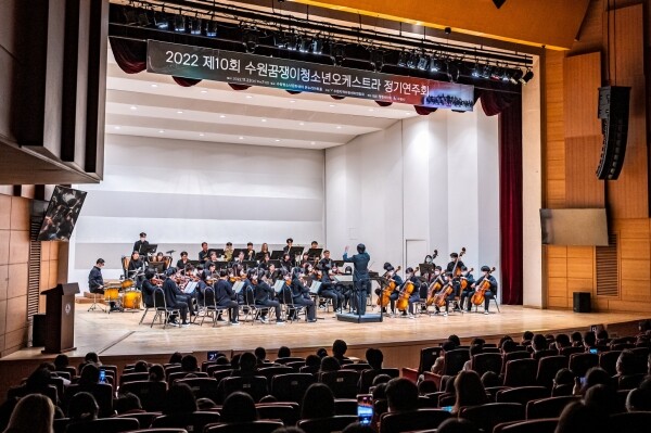 수원지역아동센터연합회가 주관하고 수원시·㈜엘림씨아이가 후원한 이날 연주회에는 일반 시민 등 300여명이 수원시 지역아동센터 학생들로 구성된 ‘꿈쟁이 오케스트라’의 음악 공연을 관람했다.