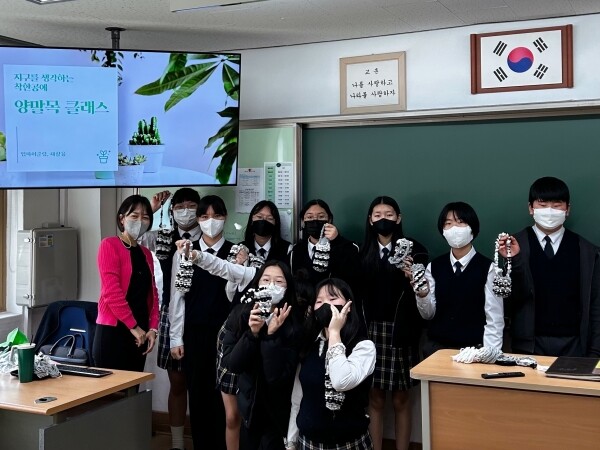 일상 속 친환경 생활규칙 이론교육을 통해 올바른 탄소중립 생활수칙을 이해하고 꽃반지, 컵받침, 텀블러가방 등 수준에 맞는 공예소품을 만들며 업싸이클링을 몸소 체험하는 시간을 갖는 교육으로 학교로 직접 찾아가서 운영하고 있다.