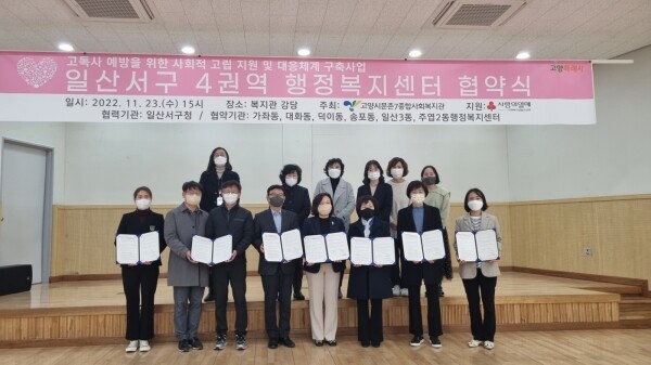 이날 협약식에는 일산3동, 주엽2동, 대화동, 송포동, 덕이동, 가좌동 동장과 동 지역사회보장협의체 민간위원장, 문촌7종합사회복지관장, 관계 직원 등 총 18명이 참석했으며 사업 활성화 및 상호 협력을 위한 공동 협약식 체결과 세부 사업 설명회와 간담회가 진행됐다.