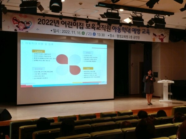 교육은 아동학대의 유형에 대해 사례를 중심으로 제시하고 아동학대 근절을 위한 보육교직원의 역할 및 아동학대 발생시 사건처리 과정에 대해 강의해 아동학대 예방의 필요성과 중요성에 대해 다시 한번 인식하게 되는 계기를 마련했다.