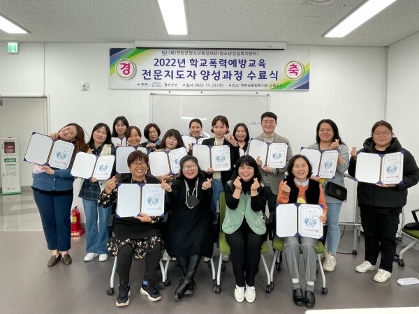 센터는 지난 17일부터 23일까지 5일간 청소년 학교폭력예방교육 전문지도자 양성과정을 운영, 14명의 전문강사를 배출했다.