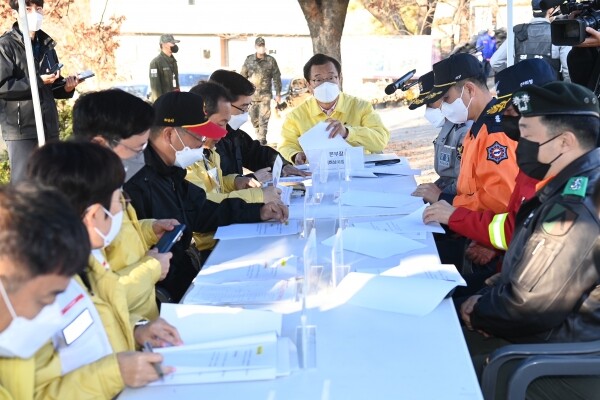 또 재난안전대책본부 및 통합지원본부 가동을 통한 인명구조 및 수습·복구 훈련에 대한 강평 등으로 약 1시간 동안 진행했다.
