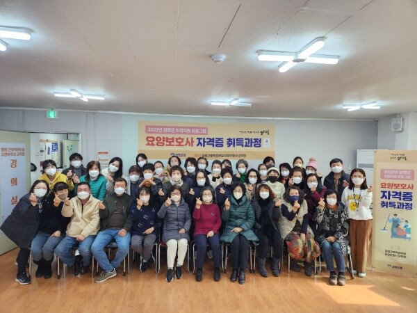 이번에 진행한 2022년 취업지원 프로그램 ‘요양보호사 자격증 취득과정’은 노인인구에 증가에 따른 요양보호사 인력 수요와 군민의 요구 등을 반영해 취업과 연계해 일자리 창출을 위한 과정으로 진행됐다.