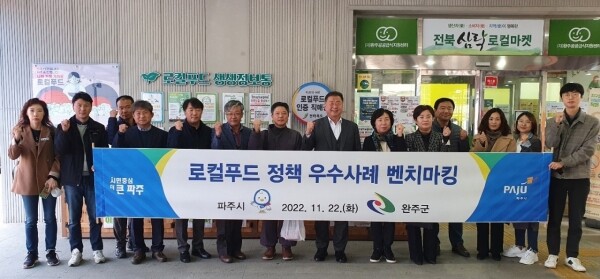 이날 김 시장을 비롯해 박은주 파주시의회 도시산업위원장, 김상기 경기도친환경농업인회장 등이 참석해 완주군 로컬마켓과 완주먹거리통합지원센터의 우수사례를 견학했다.
