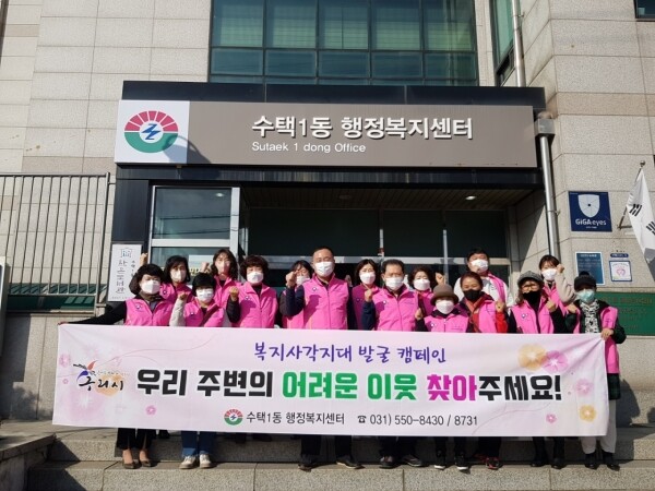홍호섭 동장은 “이번 캠페인을 통해 자신이 필요한 복지서비스를 지원받지 못하는 복지사각지대에 놓인 이웃들을 최대한 발굴해 이웃과 함께 하는 따뜻한 수택1동 조성에 힘쓰겠다”고 전했다.
