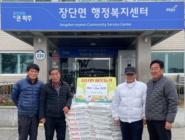 통일촌 마을회는 파주시 장단면 행정복지센터를 방문해 “소외된 이웃이 따뜻하고 건강한 겨울을 보내길 바라는 마음을 담아 이번 기탁을 준비했으며 다양한 나눔 활동을 통해 지역사회에 작은 보탬이 되도록 지원하겠다”고 말했다.