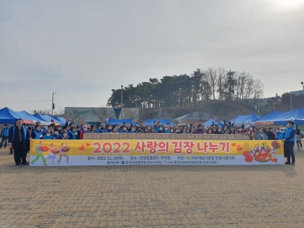 사랑의 김장나누기 행사는 안성시 공모사업으로 바르게살기운동 안성시협의회가 주관하고 한국자유총연맹 안성시지회, 안성시여성단체협의회 등이 참여한 가운데 임병주 안성시 부시장, 안정렬 안성시의회 의장, 3개 단체 회원 등 총 100여명이 모여 사랑의 손길을 전했다.