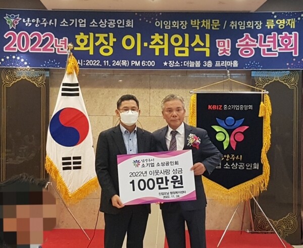 남양주 소기업 소상공인회 이·취임 회장단은 “지역을 기반으로 이웃들과 상생이 절실한 우리 소상공인들이 지역사회에 감사한 마음을 전하고 어려운 이웃을 응원하는 마음을 담아 이번 후원을 준비했다”며 “지역의 취약계층과 함께하는 소상공인이 되기 위해 앞으로도 나눔 활동에 꾸준히 참여하겠다”고 말했다.